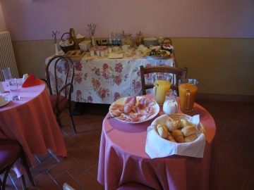 Wist u dat u hier ook heerlijk kunt ontbijten? Wel even op aanvraag. Bij mooi weer bij het zwembad en bij koud weer in een ruimte binnen. De kosten bedragen €10 p.p. Er wordt geserveerd: brood, boter, melk, koffie, thee, eigengemaakte marmelade en cake.