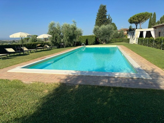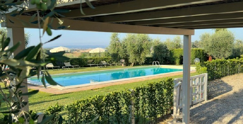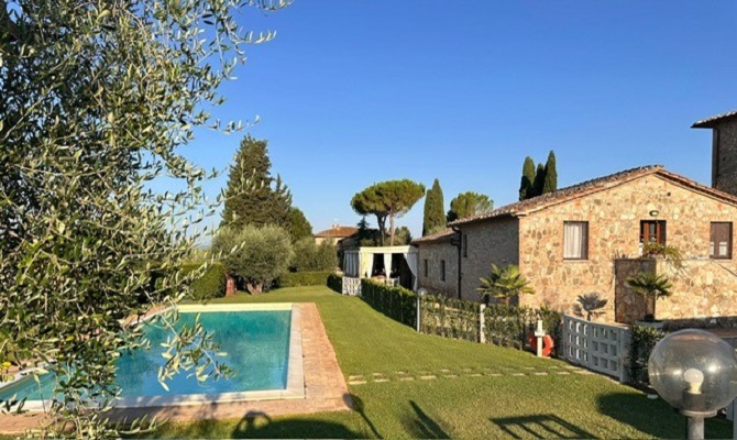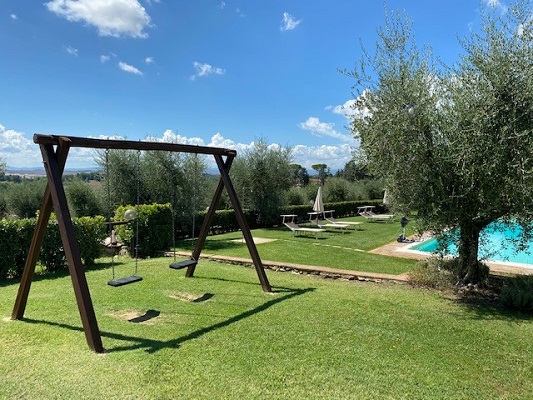 Het landgoed wordt omringd door de wijngaarden van de Chianti Senese en is daardoor rustig gelegen, maar toch ook maar op een half uur rijden van Siena.