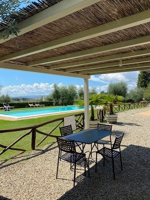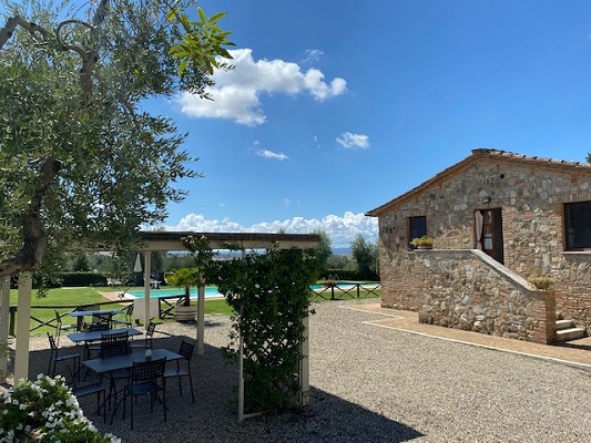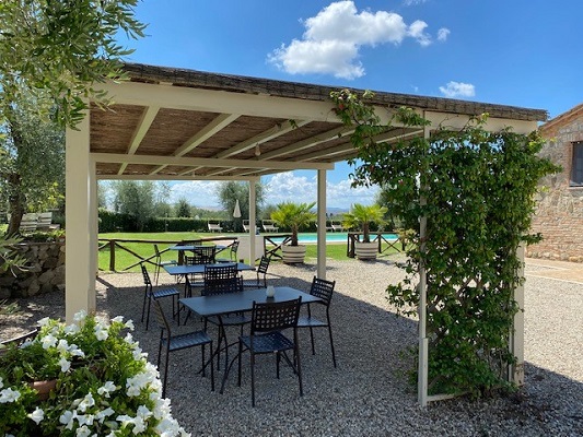 Leccino, Querceto en Olivello, delen een heel gezellig gemeenschappelijk overdekt terras.