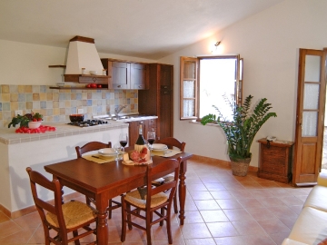 De eigenaresse Daniela woont zelf op het landgoed, maar in een separaat gelegen huis, een stuk van de appartementen af. Ze heeft in het appartementengebouwtje een gezellig, klein restaurant, waar ze graag voor haar gasten het ontbijt verzorgt en het avondeten kookt. Iedere dag is er een klein keuze menu (op zondag meestal gesloten). Drie starters, drie voorgerechten, drie hoofdgerechten en wat desserts. Allemaal even lekker en vers en zeer betaalbaar. Ook voor de (eigen) wijn wordt gezorgd. Het restaurant heeft max. 35 plaatsen.