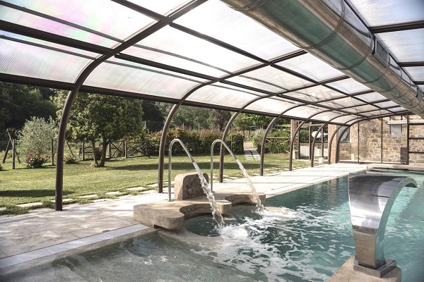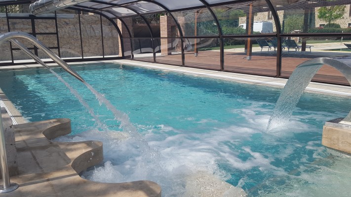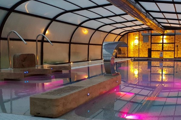 Er is ook een overdekt en verwarmd zwembad. Het is 13,5x5 meter en heeft ook een klein ondiep gedeelte, voor kleine kinderen. Er is hydro-massage en een waterval. Open in april en mei en vanaf eind september tot begin november.