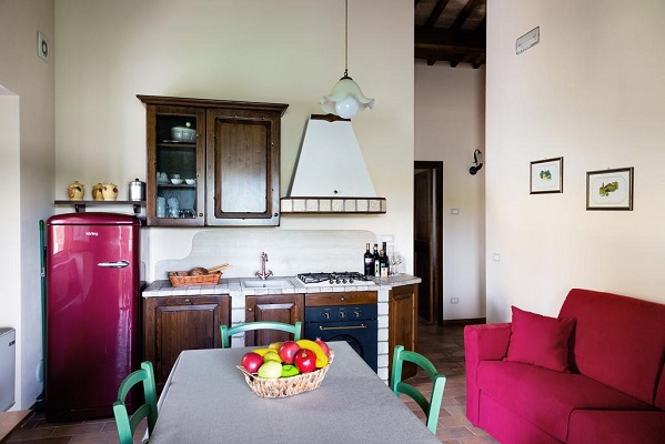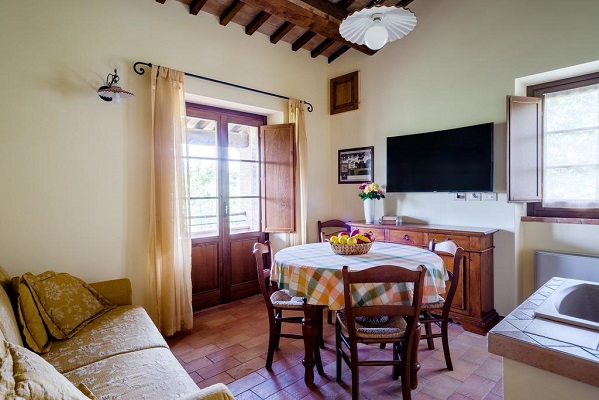 Driekamer appartementen type Luxe: de 4 driekamer appartementen op de eerste verdieping, die het dichtst bij het zwembad liggen, La Venella en Il Musignano (gebouw 3) en Il Perugino en Il Pomarancia (gebouw 4), hebben voor de zomer van 2018 een up-grade gekregen. Zo hebben deze appartementen airco (inclusief), een douche met hydromassage, föhn, een grote tv in de woonkamer, een grotere zitbank (met chaise long) in de woonkamer, op het balkon een grotere eettafel en een relax-ligstoel. In deze 4 appartementen zijn huisdieren niet toegestaan. Deze appartementen type Luxe zijn voor 4 personen.