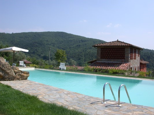 Het geheel bestaat uit een adellijke villa en daar omheen de 5 boerderijen gegroepeerd. Maar op zo'n manier, dat de boerderijen op zichzelf staande vakantiehuizen zijn geworden, met elk een eigen zwembad.