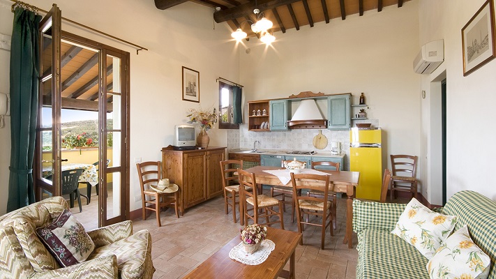 De vakantieappartementen hebben de Toscaanse klassieke stijl: cotto-vloeren, plafonds met houten balkons en de typische Toscaanse meubelen. Ze zijn zeer ruim en tot in het kleinste detail verzorgd en in alle gemakken voorzien. Er is in iedere woning internet, een 4-pits fornuis, een vaatwasser, een koffiezet-apparaat, airco, satelliet-tv.