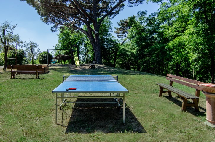 In de tuinen bevinden zich een bocce-veld (soort jeu-de boules), een leuke speeltuin, een pingpong-tafel en er zijn volop speelweides. Er staan gezellige BBQ's bij de boomrand en er is een pizza-oven. Het zwembad (1.20 - 1.70 m diep) is zeer fraai van vorm, heeft een kinderbad (70cm diep) en een jacuzzi. Bij de zwembaden is een separate toilet- en kleedruimte. Rondom het zwembad staan voldoende ligstoelen en parasols.
