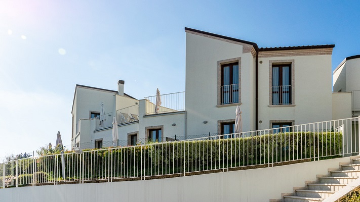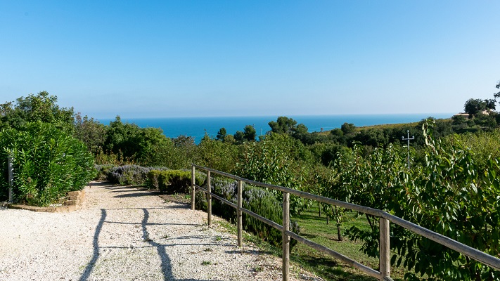 Prachtige residence met 10 appartementen, een zwembad en een speeltuin gelegen op een 8 ha. groot landgoed met olijfbomen, kersenbomen en met een schitterend uitzicht op zee in Le Marche.