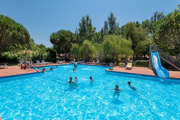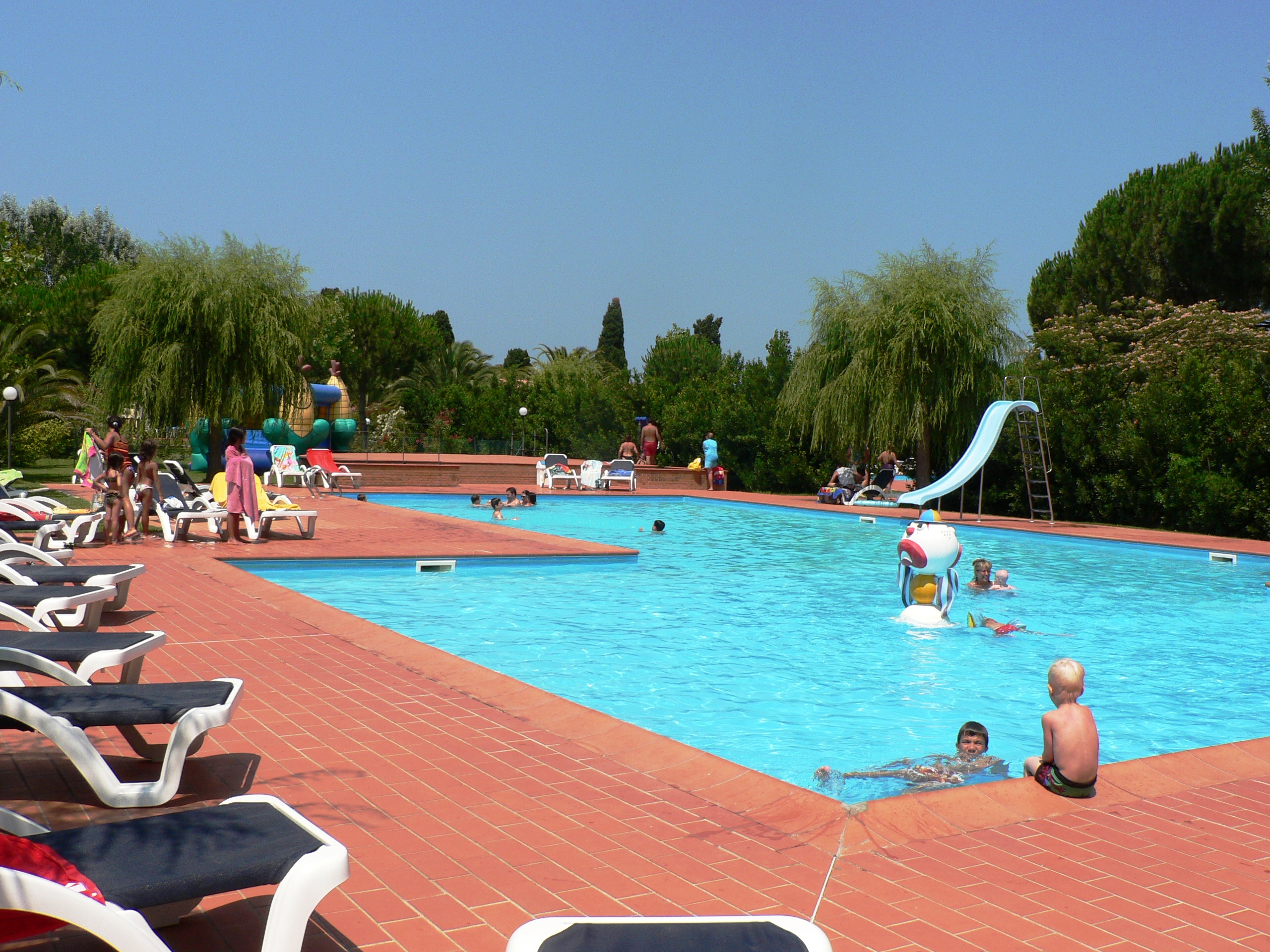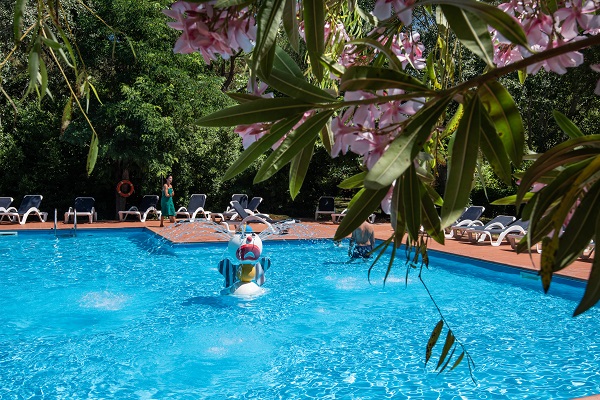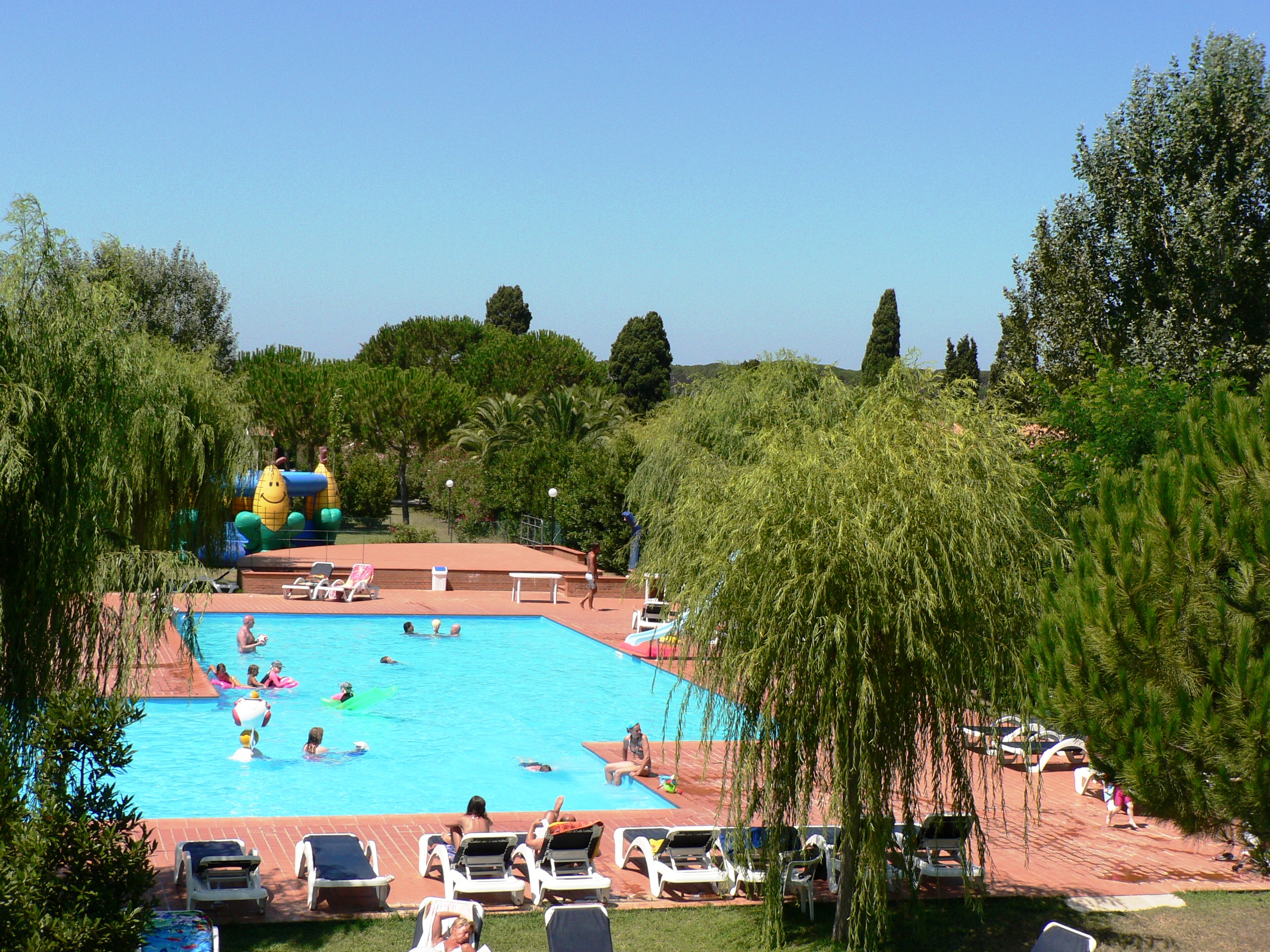Op het grote terrein van 80.000m2 bevinden zich het restaurant, de appartementen en de twee zwembaden: het grootste heeft een glijbaan en een groot ondiep gedeelte (40cm diep) voor kleine kinderen. En er is een hydromassage.