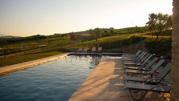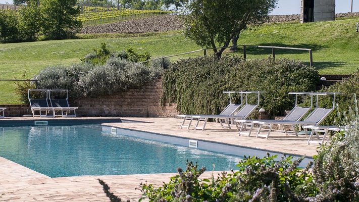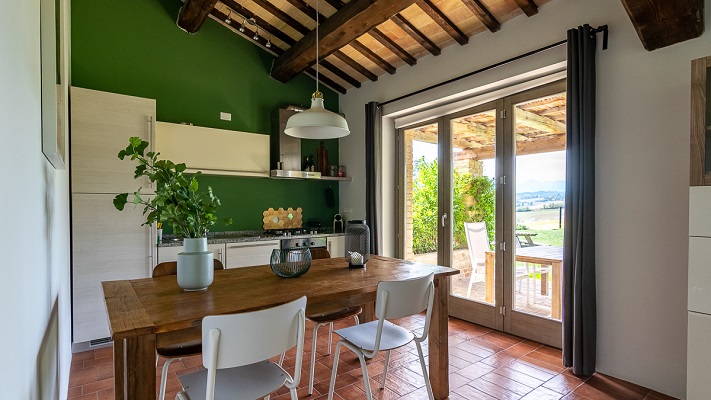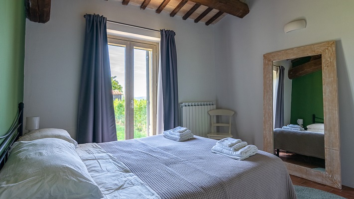 Luxe appartement van 80 m2 voor 4 personen. Beneden heeft Vernaccia een compleet ingerichte keuken met grote koelkast met vriesvak, vier pits gasfornuis en oven, afwasmachine, wasmachine, waterkoker en koffiezetapparaat. Een fijne eettafel en een woonkamer met een bank, poef, TV en geluidsinstallatie. De tuindeuren geven toegang tot het terras met uitzicht over de tuin, het zwembad en de Marchigiaanse heuvels met op de achtergrond de Sibillini bergen. Op de eerste verdieping bevinden zich twee slaapkamers en 1 badkamer (toilet, bidet, douche en wastafel).