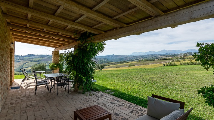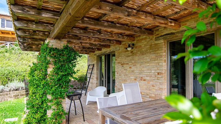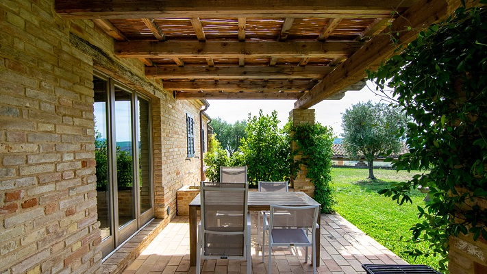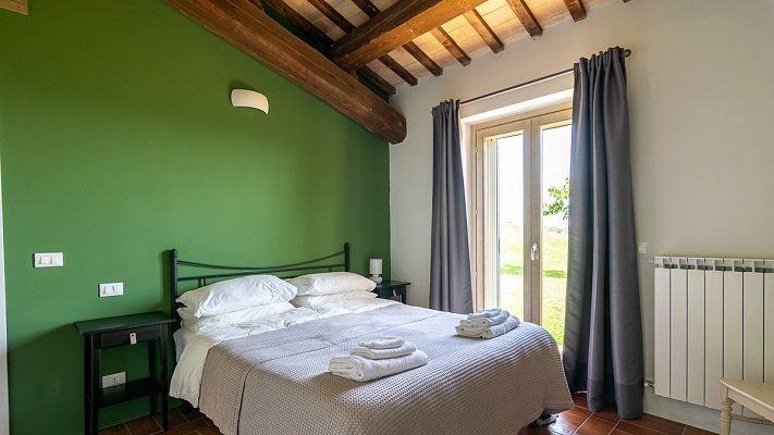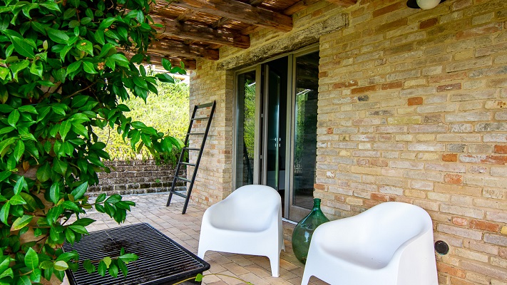 Verdicchio is een ruim en licht appartement van 115m2. Het appartement was de “originele” ingang. Een van de deuren heeft nog steeds een fraaie boog (comfortabele slaapbank voor extra 2 personen). Beneden heeft Verdicchio een compleet ingerichte keuken met grote koelkast met vriesvak, vier pits gasfornuis en oven, afwasmachine, wasmachine, waterkoker en koffiezetapparaat. Een fijne eettafel en een woonkamer met een bank, poef, TV en geluidsinstallatie. De tuindeuren geven toegang tot het overdekte terras met uitzicht over de tuin, het zwembad en de Marchigiaanse heuvels met op de achtergrond de Sibillini bergen. Op de eerste verdieping bevinden zich twee en-suite slaapkamers beiden met toilet, bidet, douche en wastafel.