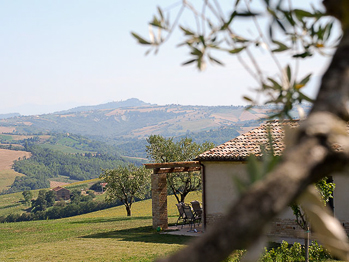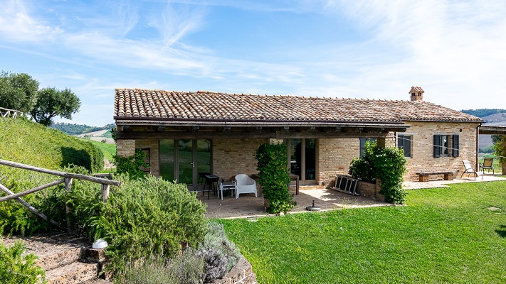 Luxe appartement van 76 m2 voor 4 personen. Rosso Conero heeft een compleet ingerichte keuken met grote koelkast met vriesvak, vier pits gasfornuis en oven, afwasmachine, wasmachine, waterkoker en koffiezetapparaat. Een eettafel en een woonkamer met een bank, TV en geluidsinstallatie. De tuindeuren geven toegang tot het terras met uitzicht over de tuin en de Marchigiaanse heuvels met op de achtergrond de Sibillini bergen. Verder zijn er twee ruime slaapkamers; een met dubbel bed, een met twee enkele bedden, en een badkamer (toilet, bidet, douche en wastafel).