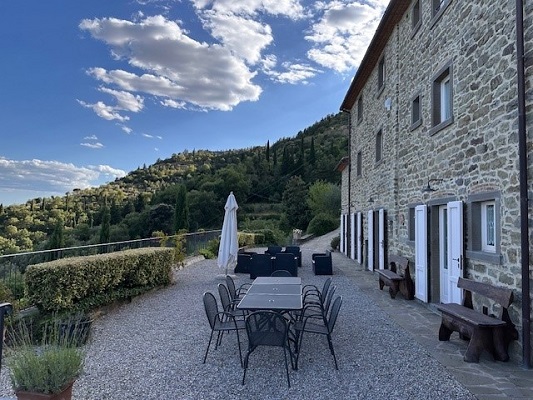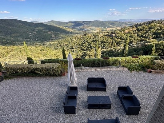 Het huis heeft diverse terrassen, die een fantastisch uitzicht bieden over het dal en een stukje Trasimeense Meer. Om het huis heen bevindt zich 1 hectare grond, met olijfbomen en het terrein beneden wordt "bewaakt" door de Sardijnse ezel Biondino !