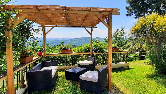 Villa La Palazzina dateert uit de 2e helft van de 18e eeuw, toen het een jachtverblijf was. De villa ligt op een hoogte van 580m en heeft een prachtig uitzicht naar de heuvels en dalen rondom.