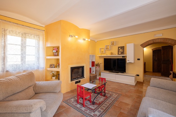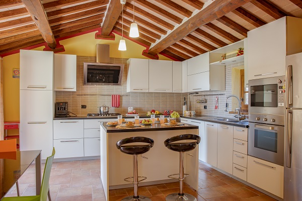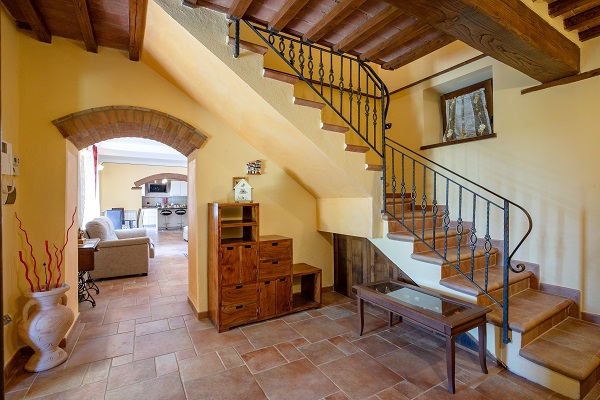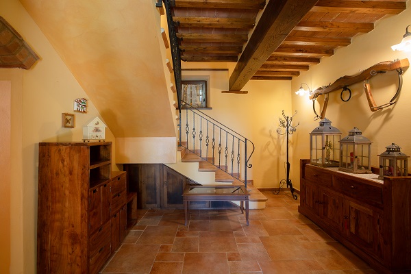 Podere Merlino is een mooi huis, gelegen in het dal bij Cortona. Het is pas gerestaureerd. De eigenaren hebben er vrolijke kleuren in aangebracht (gele muren), waardoor het huis binnen licht en zonnig oogt.