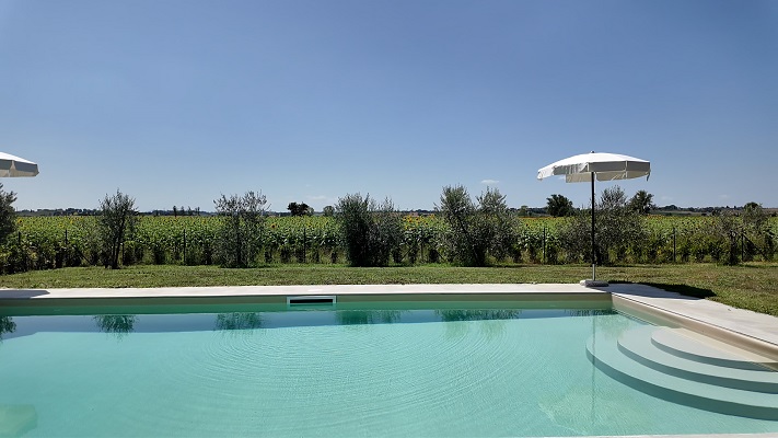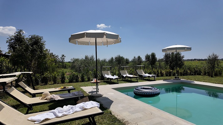 Het zwembad (10x5m, chloor gefilterd) is voor privé gebruik van de gasten en heeft een mooie trap om rustig het zwembad in te gaan (of om op te zitten).